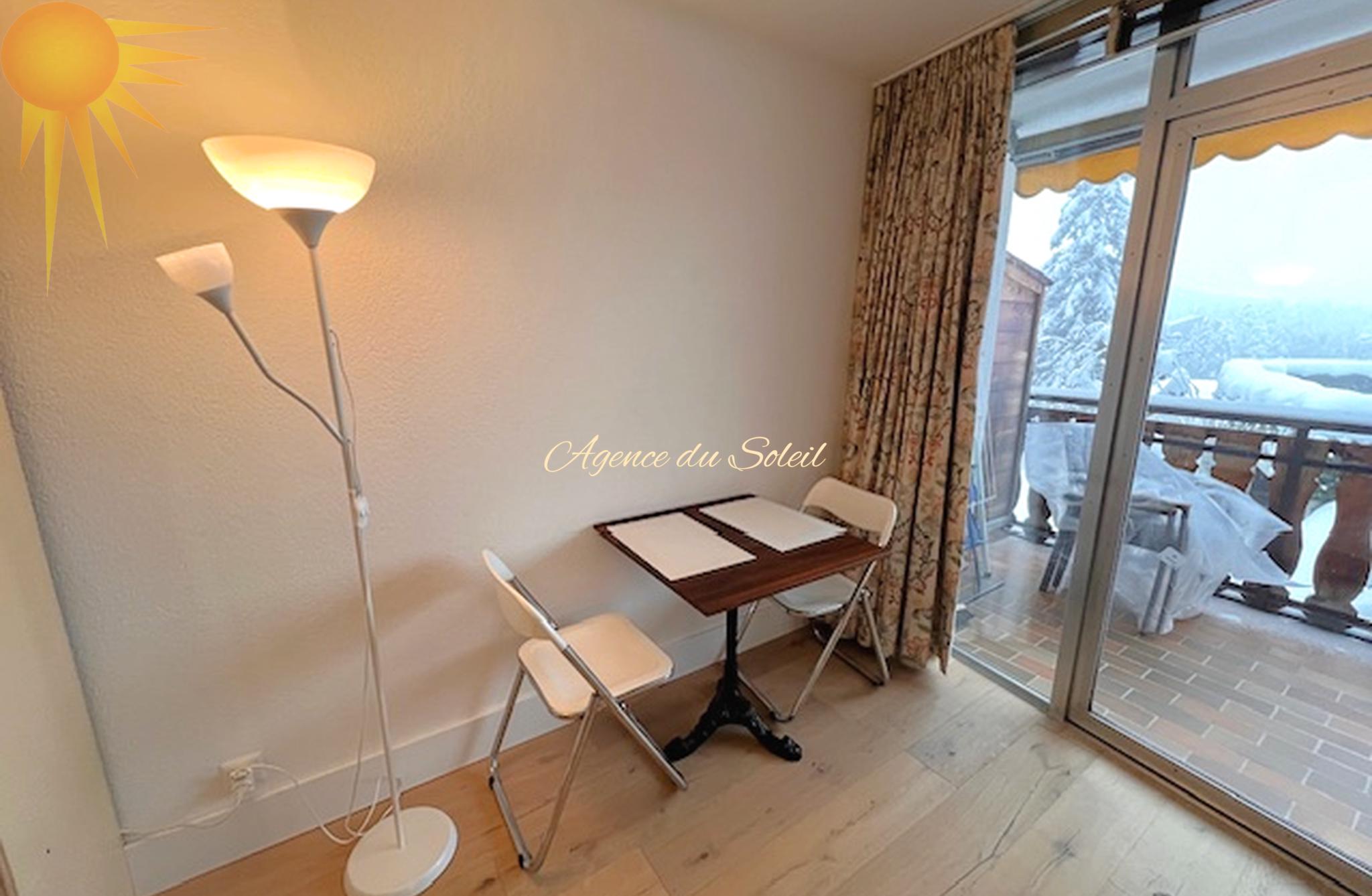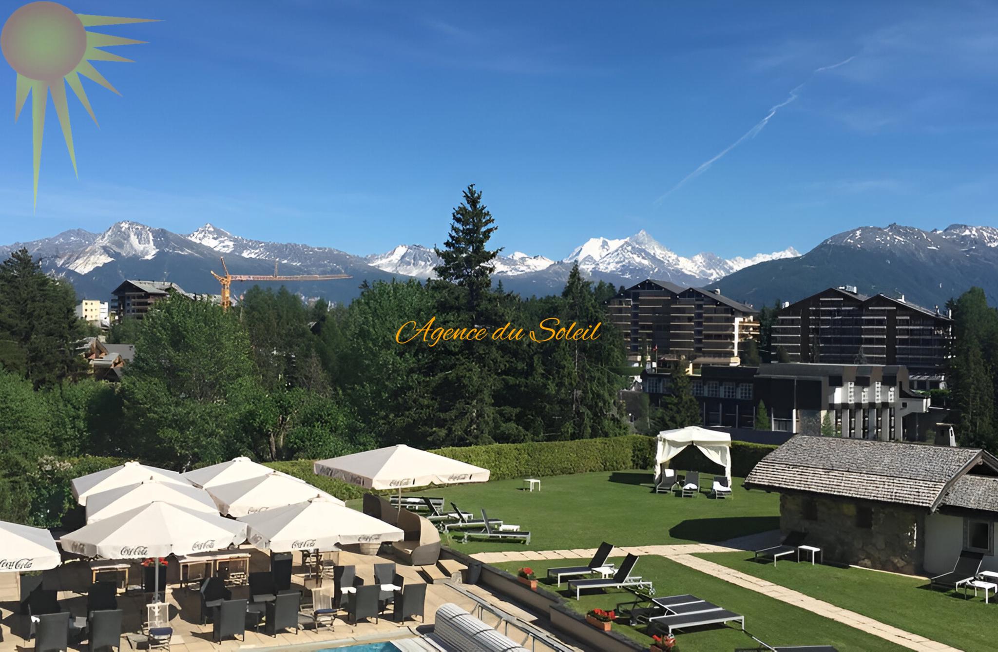 Réf. 14 : À louer à l'année, superbe studio de standing d’environ 32 m2 rénové, très cosy et bien aménagé, avec un balcon sud d'environ 8 m2, dans la résidence hôtelière « L’Etrier » à proximité du centre de Crans, des remontés mécaniques et de tous commerces. Endroit calme et très bien ensoleillée. Superbe vue déagagée. Accès à la piscine de l'hôtel, hammam et sauna.
