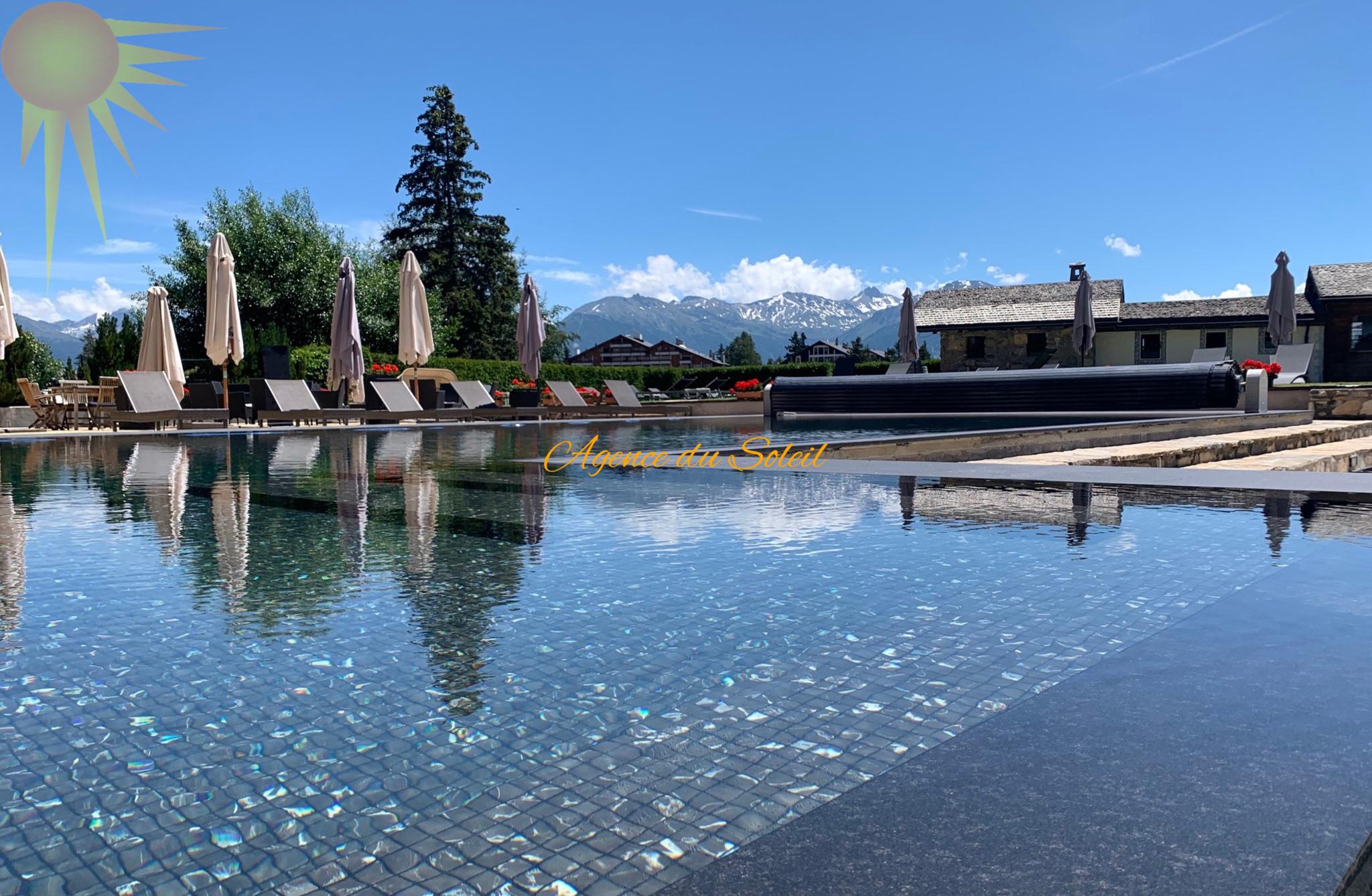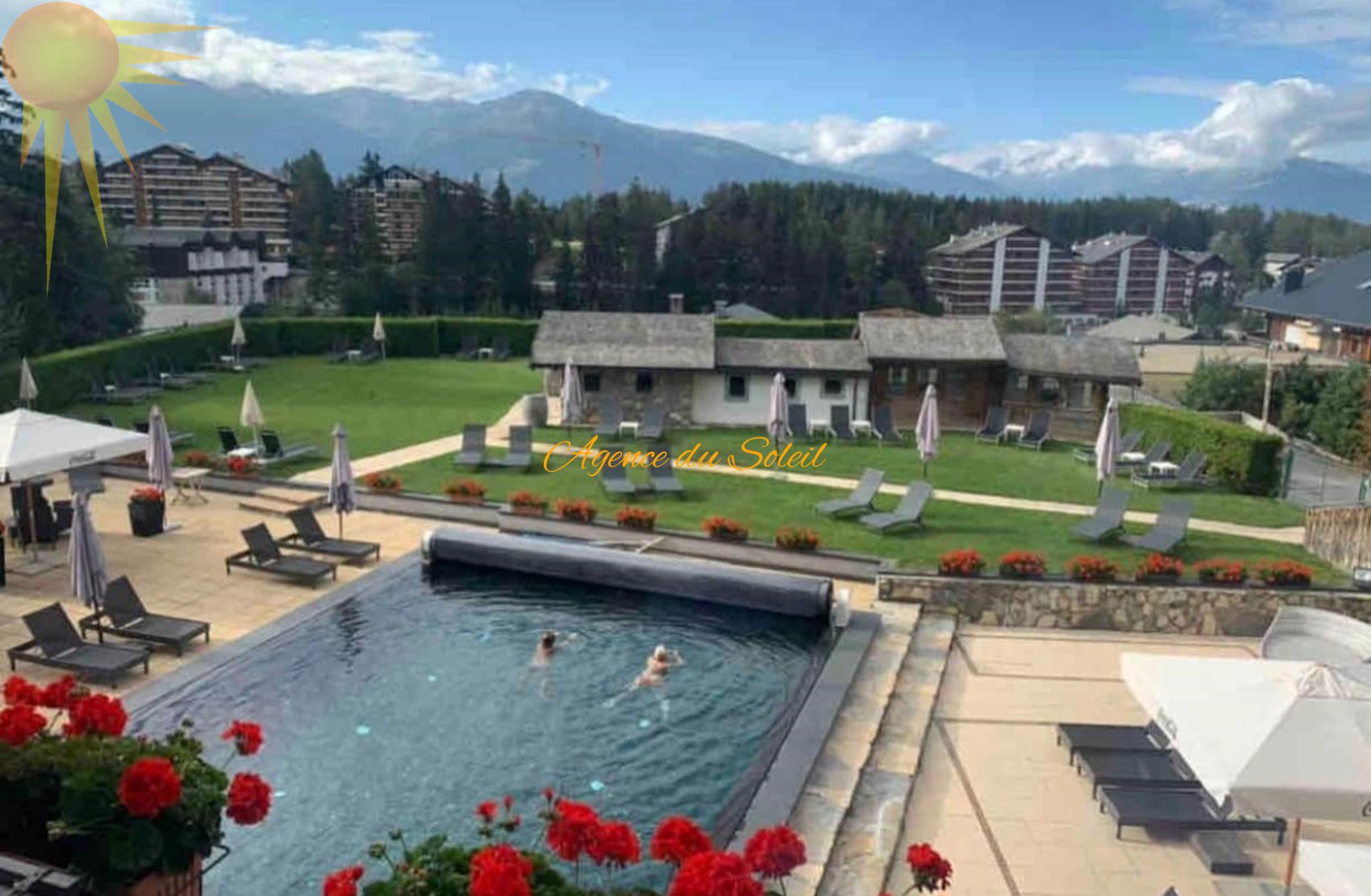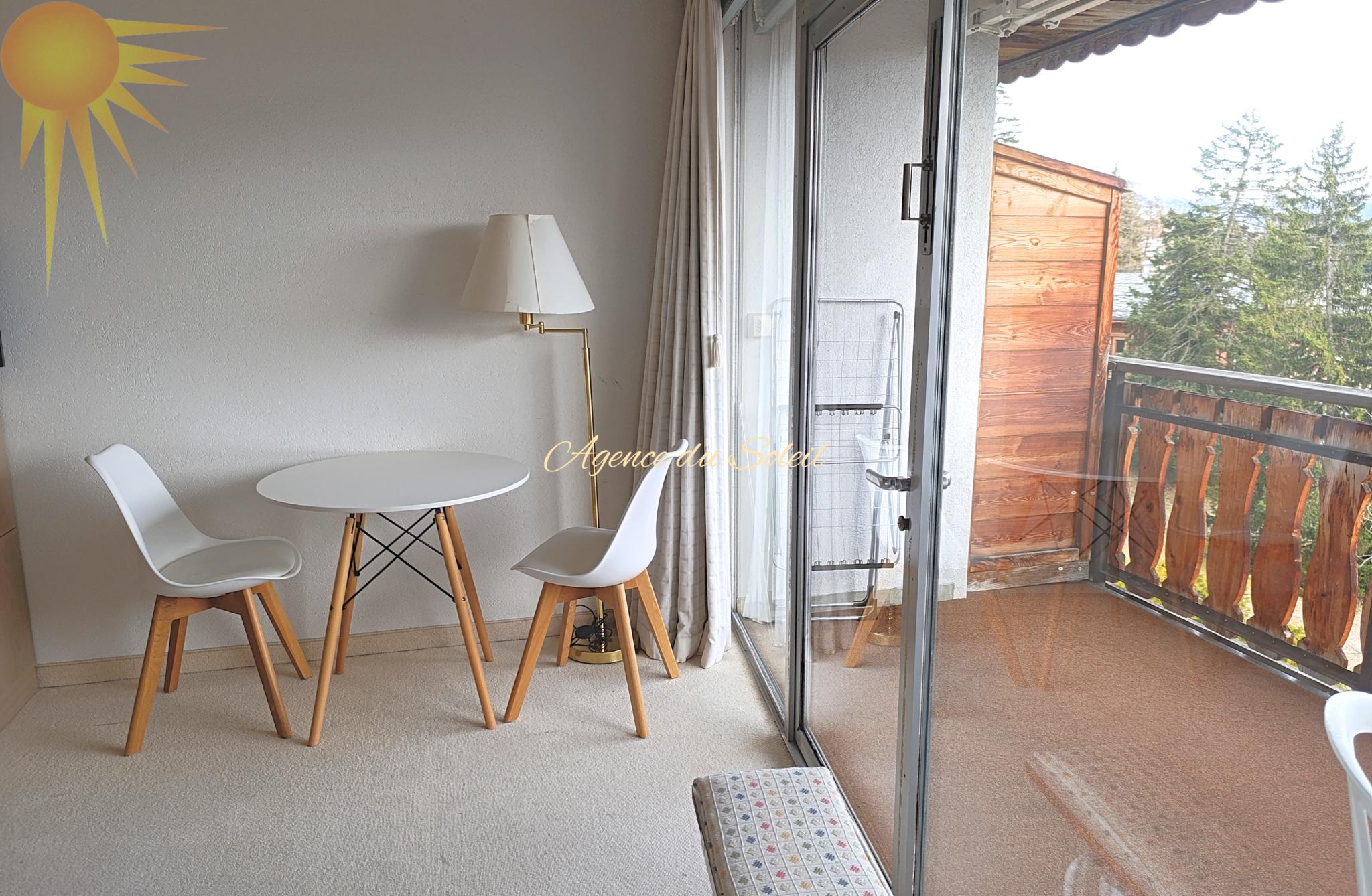Réf. 11 . À louer à l'année uniquement, ce superbe studio de standing bien aménagé et bien entretenu, d’environ 32 m2 avec un très joli balcon sud d'environ 8 m2, dans la résidence hôtelière « L’Etrier », à proximité du centre de Crans, des remontées mécaniques et de tous les commerces. Endroit calme et ensoleillée. Piscine à disposition gratuitement ! Superbe vue dégagée sur les Alpes.