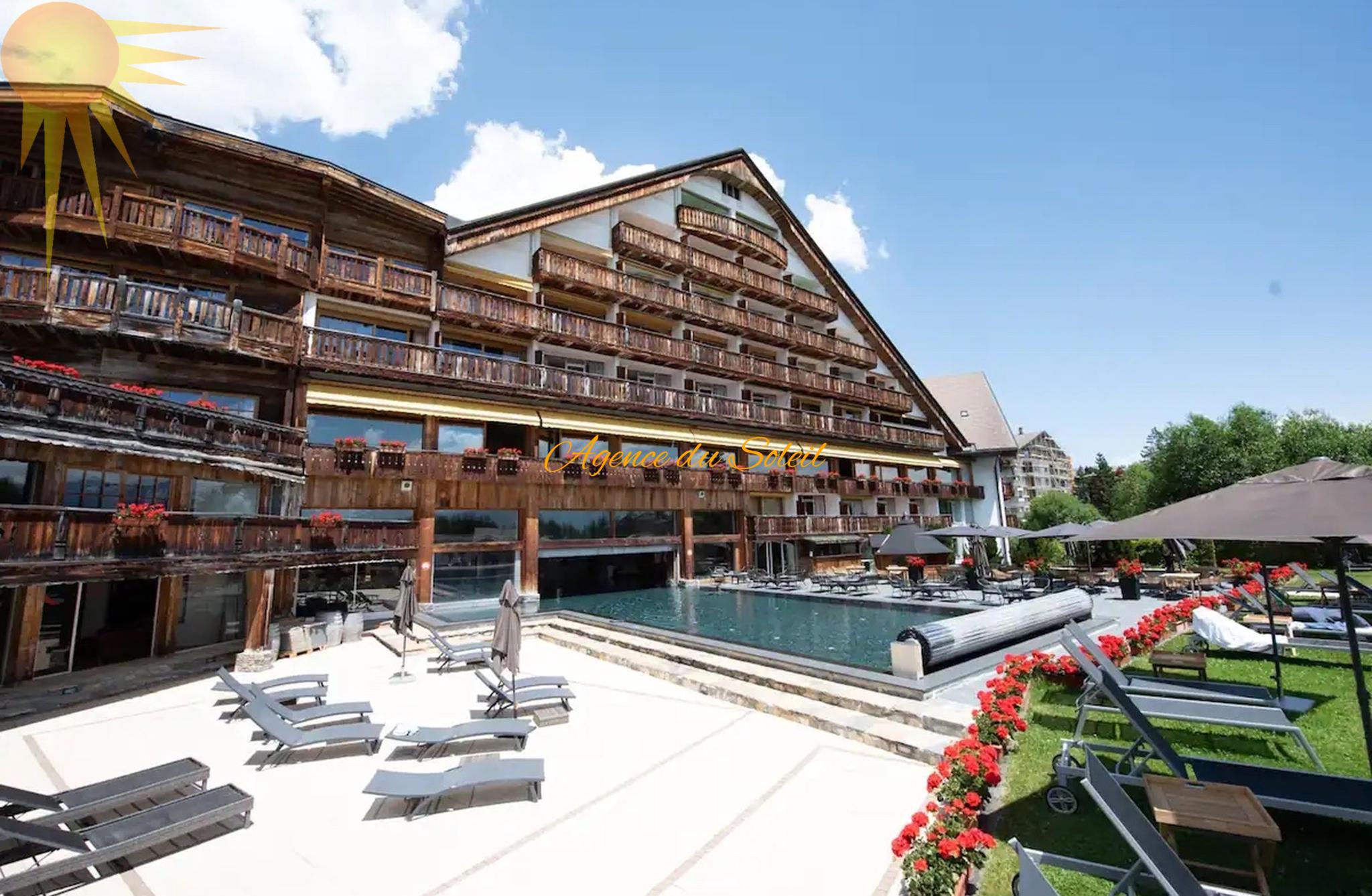 Réf. 15 : À louer à la saison d’hiver entre le 1er décembre 25 et le 30 avril 26, ce superbe studio rénové, meublé et magnifiquement agencé, d'environ 20 m2, situé au sein de la résidence hôtelière « L’Etrier », à proximité du centre de Crans, des remontées mécaniques et de toutes les commodités. Ce dernier bénéficie d’une belle luminosité toutau long de la journée. Accès gratuit à la piscine intérieure, au jacuzzi et au sauna. Un arrêt de bus se trouve juste en face de l’hôtel. Plusieurs places de parc extérieures
