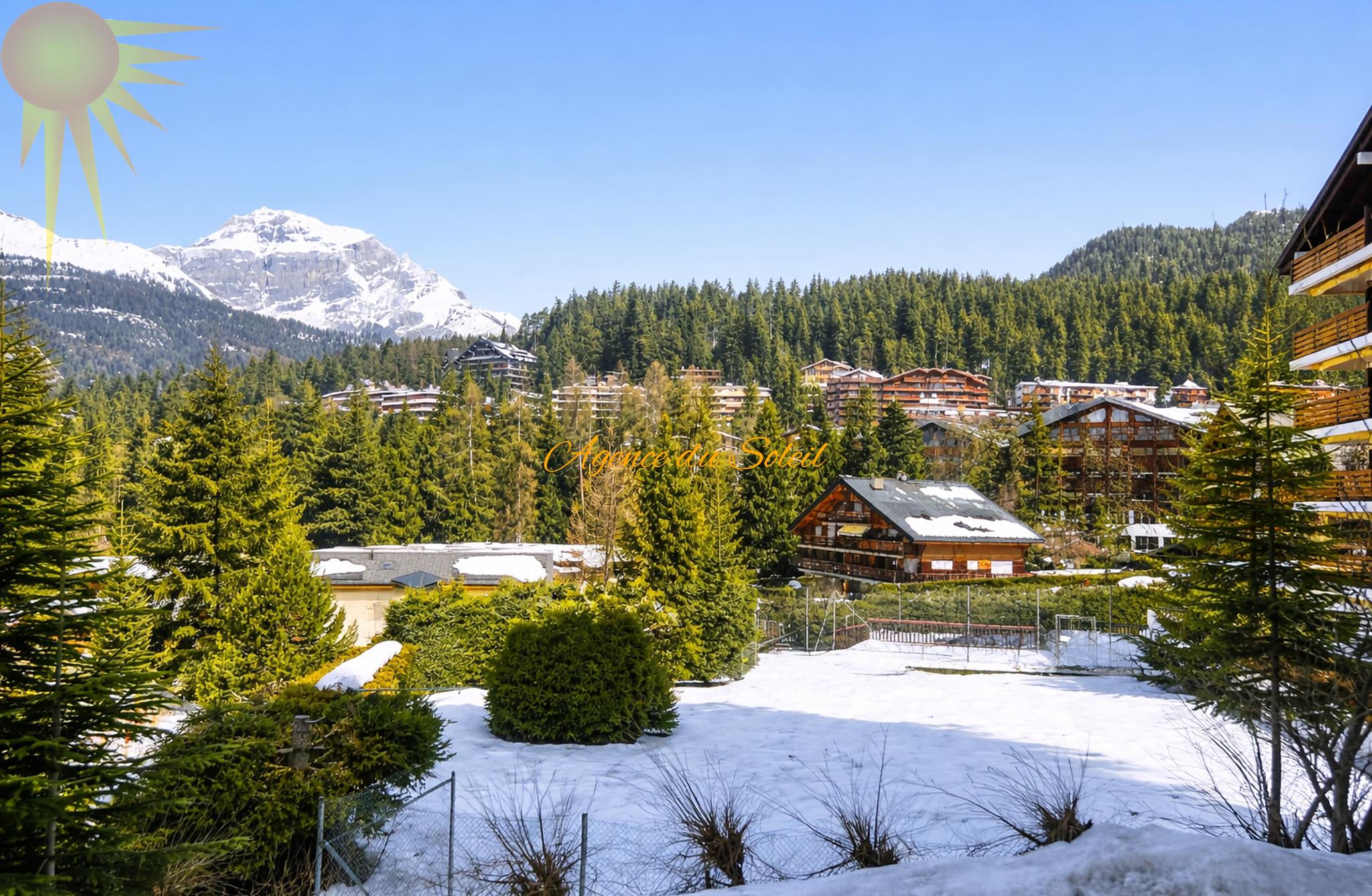 Ref. 3207: Ideal as a pied-à-terre or for investment! Comfortable 3.5-room apartment of approximately 55 m², renovated in 2024, north-facing, and benefiting from a splendid unobstructed view of the Valais Alps. Ideally located, it is situated in a sought-after, very quiet residential area, close to the Régent School and the 18-hole Severiano Ballesteros Golf Course, and just a 7-minute walk from the center of Crans, with its many amenities, shops, and restaurants. A bus stop (free shuttle buses) is located just a few steps from the apartment, making it easy to get around. Several outdoor parking spaces in front of the residence are available for residents. Sold unfurnished.